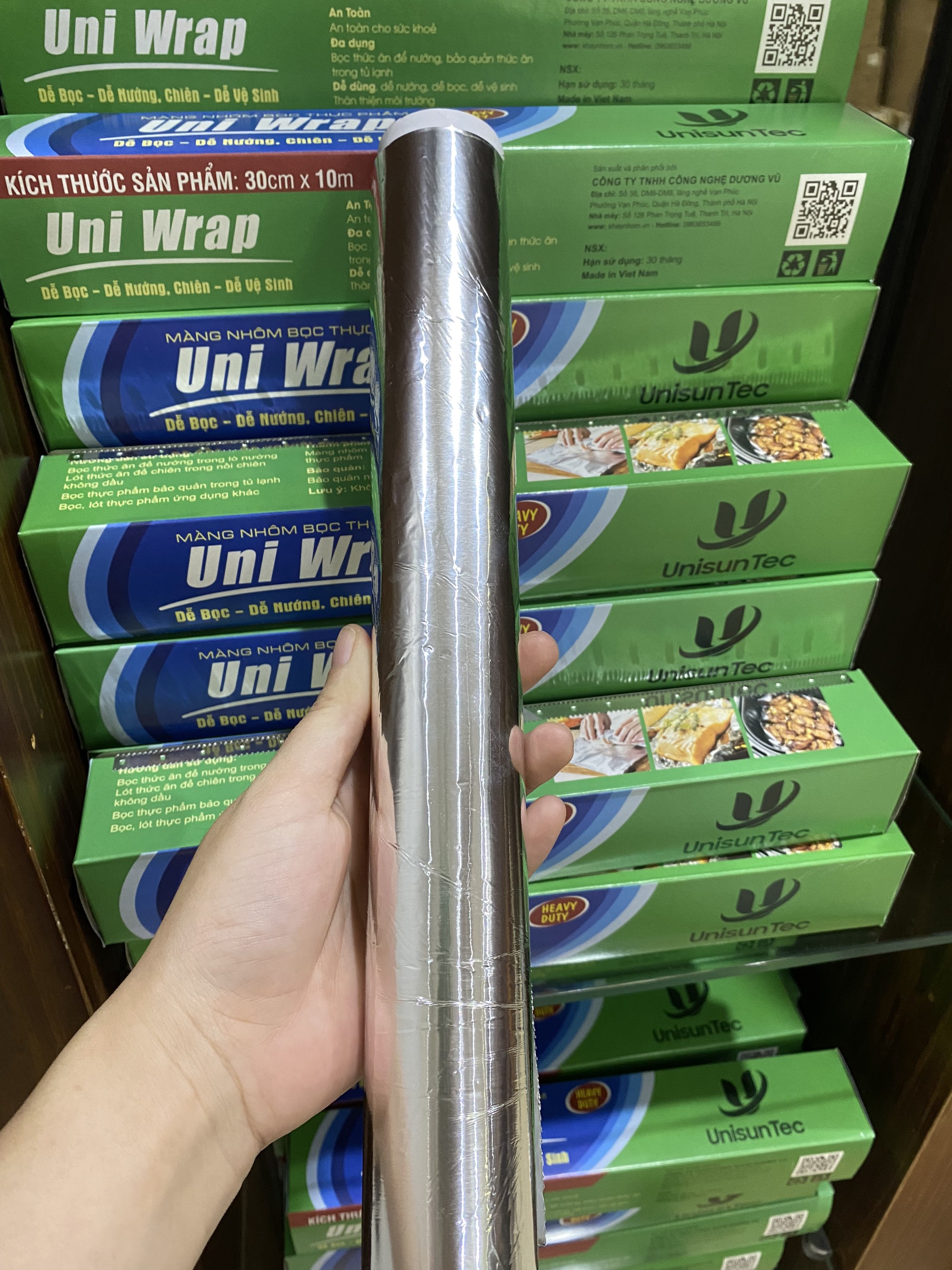 Công ty TNHH CÔNG NGHỆ DƯƠNG VŨ là sự lựa chọn hàng đầu. Các sản phẩm của DƯƠNG VŨ đều được sản xuất trên dây chuyền tiên tiến và đạt giấy chứng nhận về độ an toàn thực phẩm khi đến tay người tiêu dùng . Giấy bạc Uni Wrap DƯƠNG VŨ dễ bọc, dễ nướng, dễ dàng vệ sinh với nhiều kích thước đa dạng cho chị em tha hồ lựa chọn. Bên cạnh đó nó mang những đặc điểm sau: