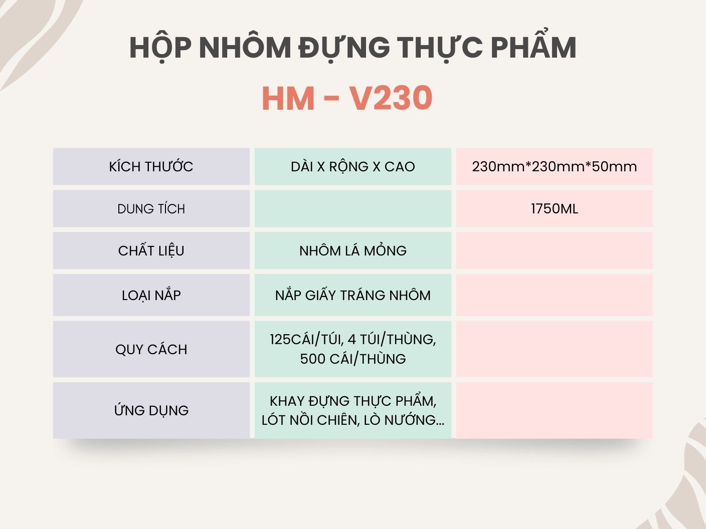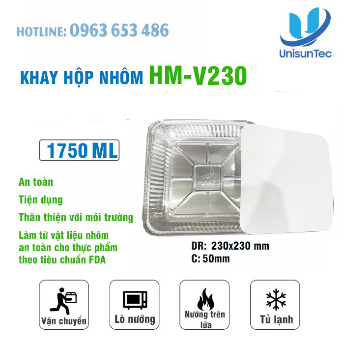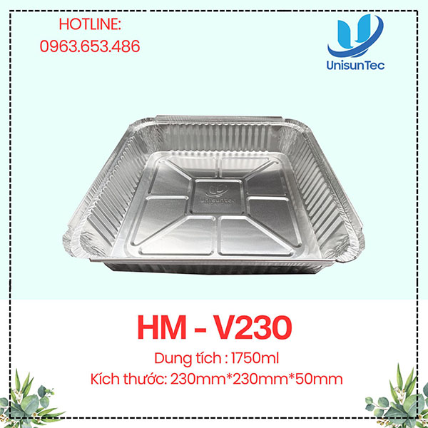 Hộp nhôm đựng thực phẩm tiện dụng HM-V230 là một giải pháp tuyệt vời để bảo quản và vận chuyển thức ăn một cách an toàn và tiện lợi.