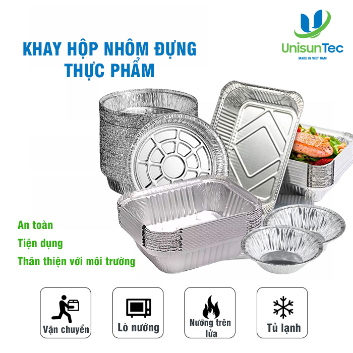 - Khay giấy bạc hay hộp nhôm đựng thực phẩm, giấy bạc bọc thực phẩm có rất nhiều công dụng khác nhau như: