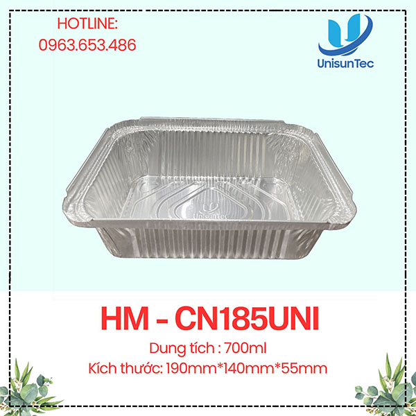 Khay hộp nhôm đựng thực phẩm HM-CN185 dung tích 700ml là một dụng cụ đựng thức ăn một lần đang rất hot. Đây là hộp đựng thực phẩm đang dần trở nên phổ biến hiện nay.